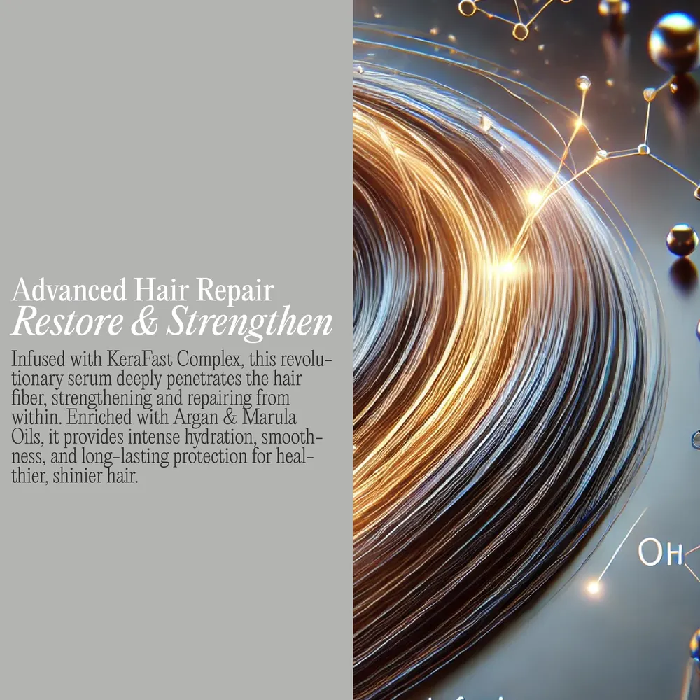 A powerful hair serum enriched with Kerafuse complex, argan and marula oils, and fruit extracts. It repairs, smooths, and adds shine to your hair.